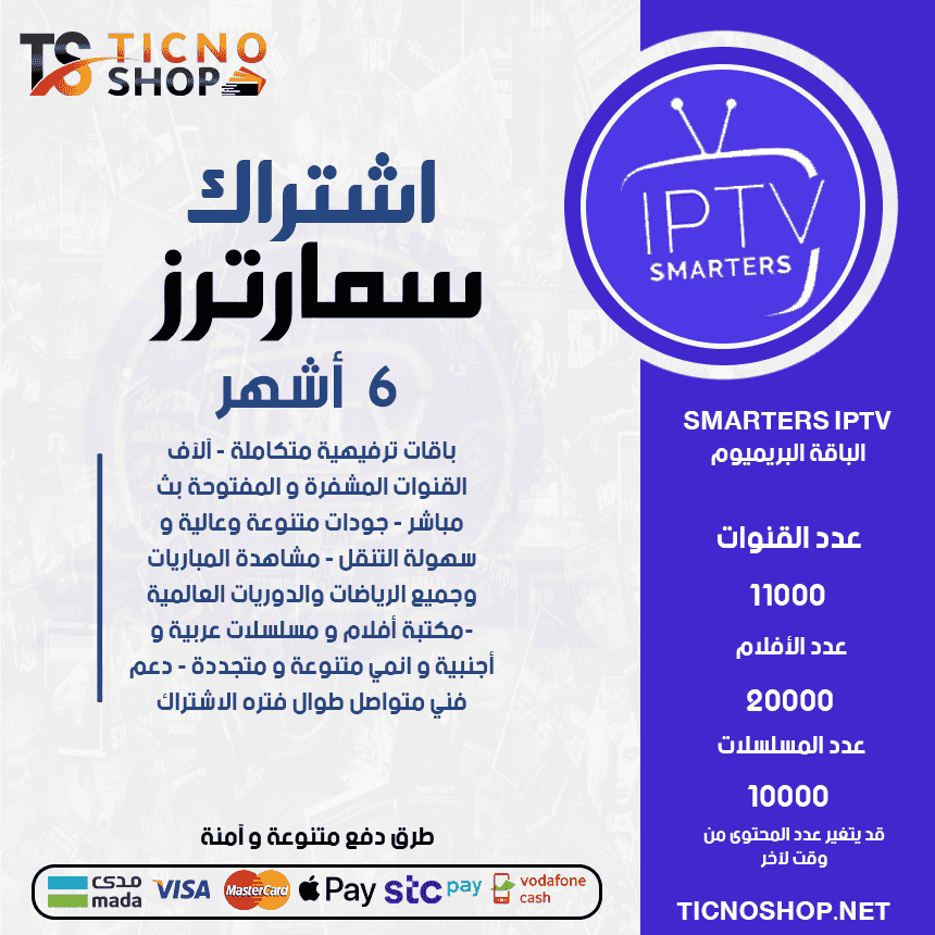 IPTV SMARTERS – اشتراك سمارترز مدة 6 اشهر الباقة بريميوم